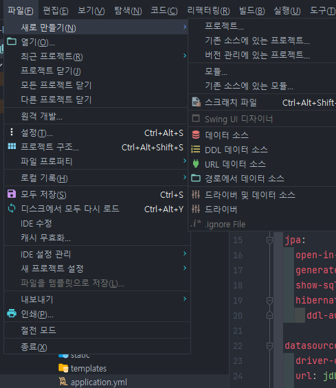 src/main/resources/application.properties 파일의 이름을 application.yml로 변경하고 아래 소스를 추가