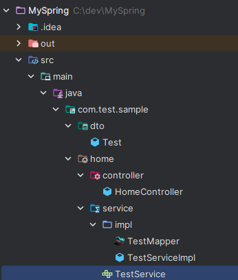 TestMapper, TestService, TestServiceImpl 파일들을 만들어 볼텐데 순서대로 진행해 보자.