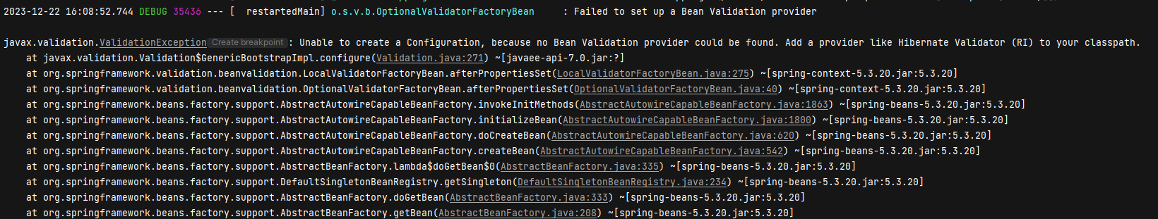 스프링 부트 애플리케이션 개발 중 javax.validation.ValidationException 오류가 발생했다면, 여기에 해결 방법을 안내합니다. 이 오류는 Bean Validation API의 구현체가 클래스패스에 없을 때 주로 발생합니다.