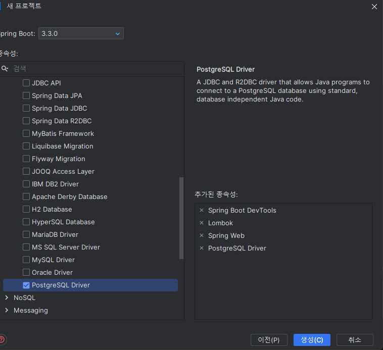 IntelliJ에서 새로운 프로젝트를 생성한 후, 필요한 종속성을 추가합니다.