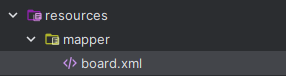 resources 경로에 mapper 디렉토리를 생성하고, 그 안에 board.xml 파일을 작성합니다.