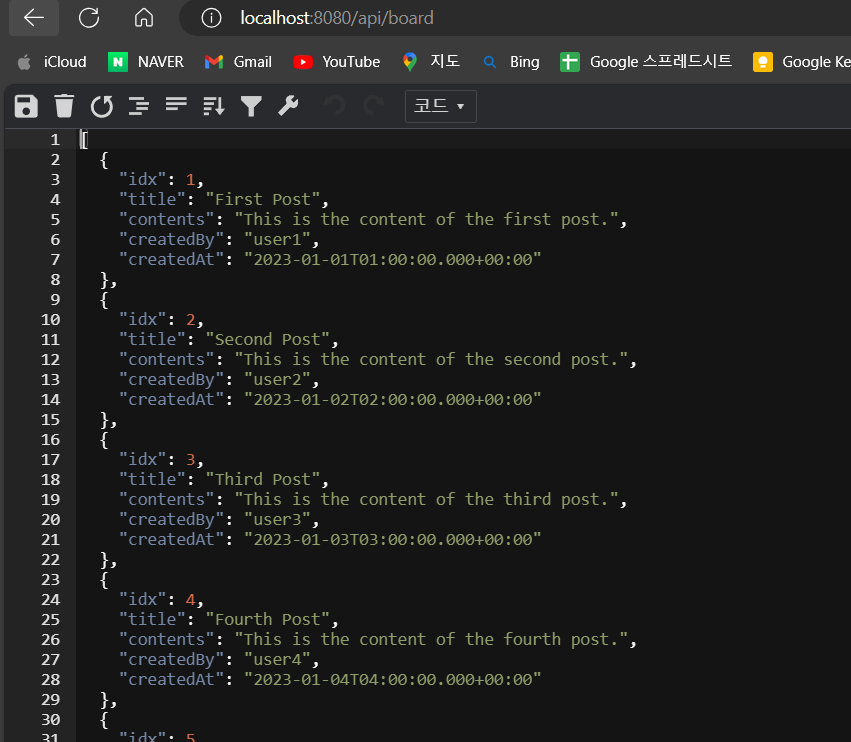 프로젝트를 실행하여 /api/test와 /api/board 엔드포인트를 확인합니다. 데이터가 올바르게 출력된다면 성공입니다!