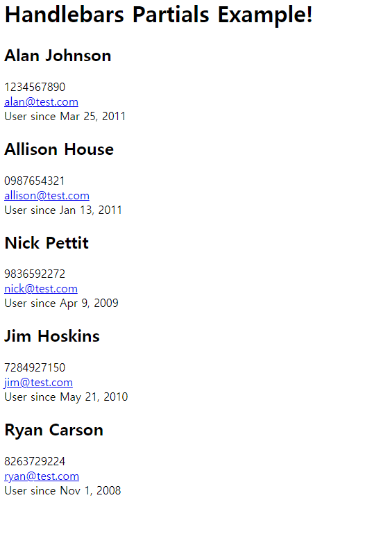 { first_name: "Alan", last_name: "Johnson", phone: "1234567890", email: "alan@test.com", member_since: "Mar 25, 2011" },